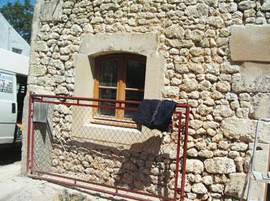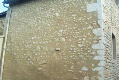 Rénovation de façade avec enduit rustique, moellon apparent.